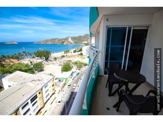Apartamento en el Rodadero cerca de la playa con balcón y vista al mar. Cuenta con 1 habitación amplia, 2 baños, sala, cocina con los utensilios para preparar alimentos, lavadora, Wi-Fi. El edificio tiene parqueadero, piscina, ascensor. Alrededor encontrarás droguerías, hoteles, centros comerciales. A 12 kms está el aeropuerto Simón Bolívar. A 5 minutos en lancha podrás visitar el acuario y Playa Blanca.