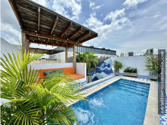 Uno de los tesoros más valiosos de esta casa es su vista panorámica, permitiendo una conexión directa con la bellísima ciudad de Cartagena de Indias y su arquitectura colonial. Adicionalmente, cuenta con aire acondicionado para mantener un ambiente agradable en todo momento y la opción de relajarse en su propio baño turco.